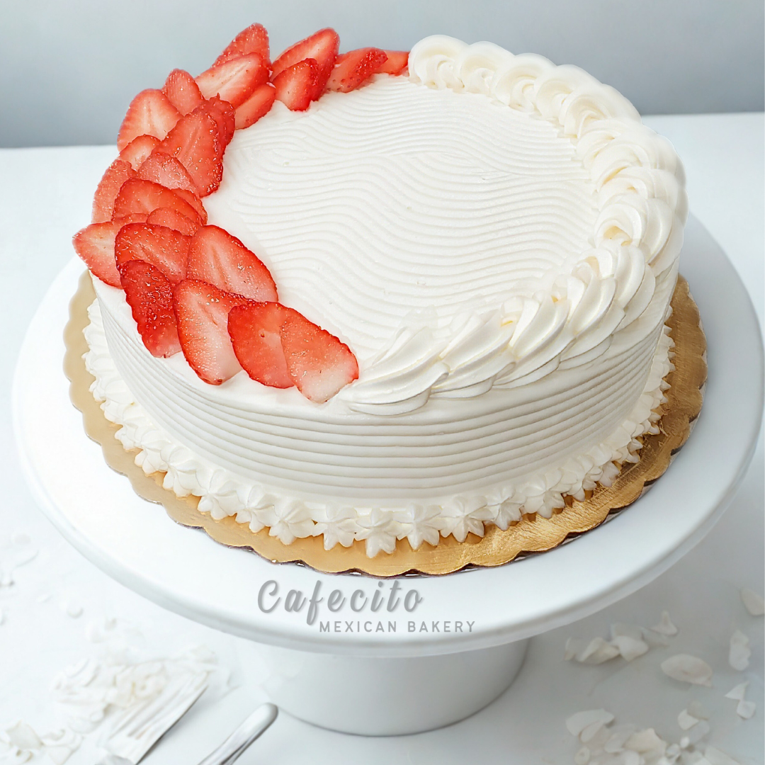 Our most popular flavor! Two layers of creamy vanilla sponge cake soaked in our homemade tres leches blend with a fresh strawberry and whip cream filling.